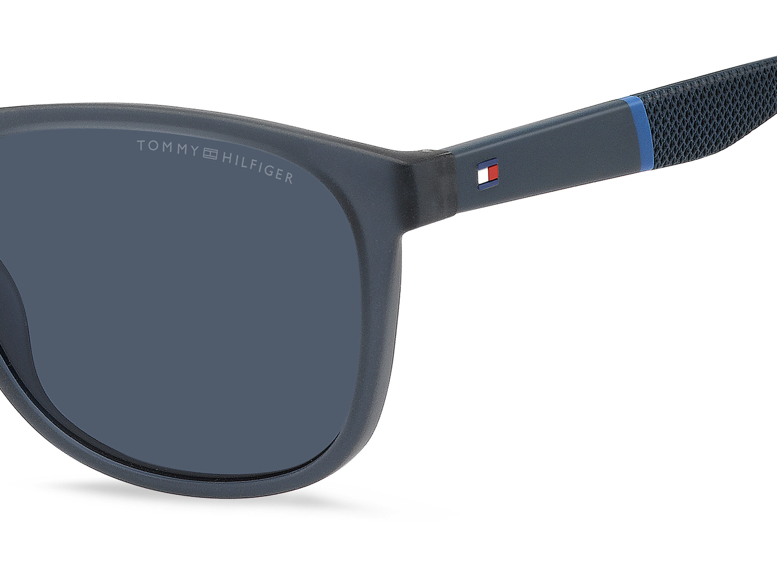• التفاصيل: يظهر شعار “TOMMY HILFIGER” بأحرف بيضاء صغيرة على العدسة اليمنى، بينما يظهر شعار العلامة التجارية باللونين الأحمر والأبيض والأزرق على مفصل الذراع، وهي لمسة مميزة تعبر عن هوية العلامة التجارية.